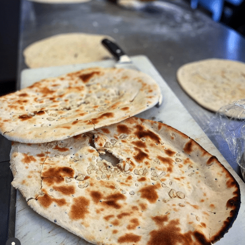 Alle Fladenbrote werden mit Weizenmehl zubereitet und im Tandoor gebacken.